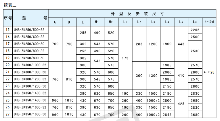 UHB-ZK200/400-25 UHB-ZK200/400-32 UHB-ZK150/250-30